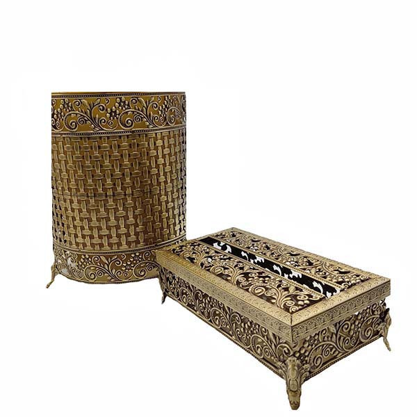 ست سطل و جای دستمال کاغذی مدل گل ریز آنتیک