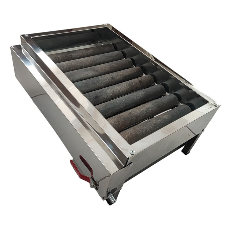سینی کباب پز به ارتفاع 5 سانتیمتر جایی برای ریختن آب دارد که چربی های اضافی کباب درون آب بریزند و دود نکنند تا در نهایت کباب به شکل نرم پخته شود. این دستگاه برای جوجه کباب، کوبیده، برگ، جگر، سوسیس، ماهی، میگو، انواع سبزیجات، سیب زمینی کبابی و قارچ مناسب بوده و شما با داشتن این کباب پز خانگی نیازی به داشتن کباب پزهای دیگر نخواهید داشت. کباب پز مدل گازی به علت کوچک بودن، سبک بودن و سهولت در جابجایی کاربرد فراوانی دارد؛ همچنین به دلیل طراحی بسیار زیبا حتی برای استفاده در خانه و بالکن منازل قابل استفاده است. کباب پز مدل گازی استیل متفاوت با نمونههای مشابه در بازار است که از استیل ضد زنگ و مقاوم با قطر بالا و اسکلت بندی محکمی ساخته شده است.و هیچ ورق گالوانیزه ای در آن بکاربرده نشده است. جهت ساخت این کباب پز از کالاهای درجه 1، شیرآلات استاندارد و ولوم های با کیفیت استفاده شده است. کباب پز استیل 52 سانتیمتری دارای 8 عدد ناودانی چدن با طول ناودانی چدني 29 سانتیمتری و دارای 1 عدد شیر گازی استاندارد است. کباب پز مدل گازی دارای اسکلت از قوطی پروفیل محکم، قاب و فرم بدنه از استیل نگیر براق است که ارتفاع 20 سانتیمتر دارد. جمع وزن کل 9 کیلوگرم و دارای سینی زیرین به ارتفاع 5 سانتیمتر از جنس ورق گالوانیزه جهت جمع آوری روغن و ضایعات است و قابل استفاده با گاز شهری و گاز مایع خواهد بود.